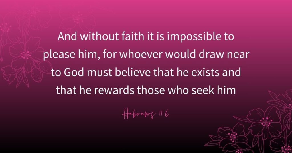 Hebrews 11 verse 6 tells us, “And without faith it is impossible to please God, because anyone who comes to Him must believe that He exists and that He rewards those who earnestly seek Him.” Faith is not about believing in our own abilities. It is believing in who God is and trusting that He will meet us when we obey Him.